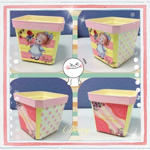 隔天馬上拿家裡的盆栽~~畫了菱格紋~和蕾絲~