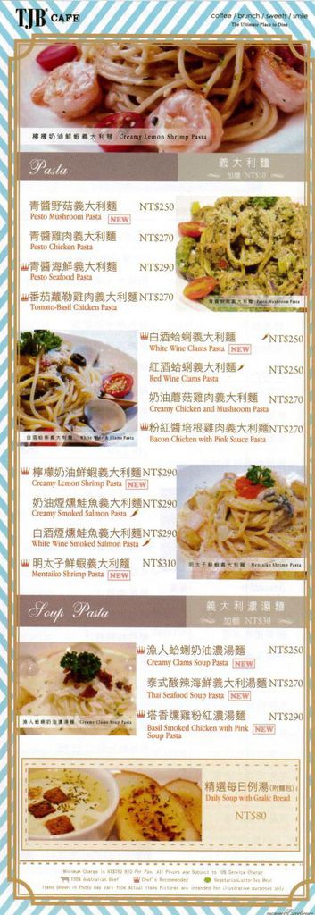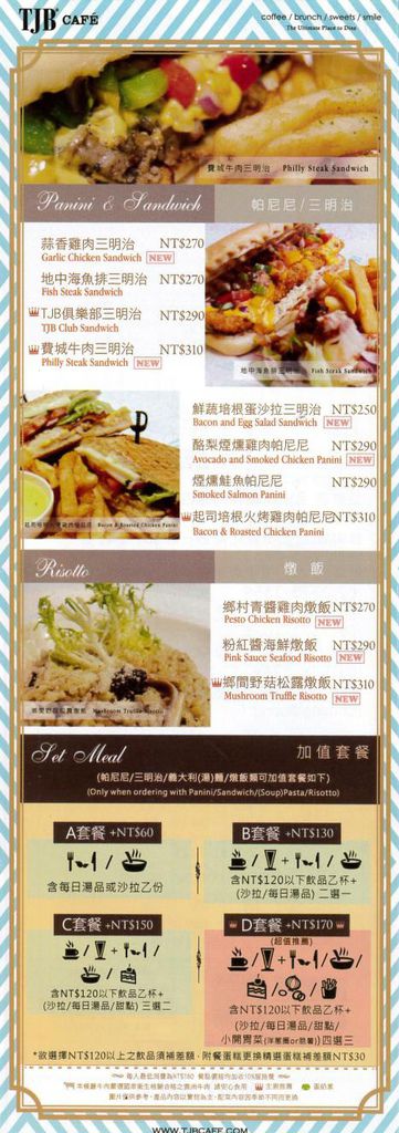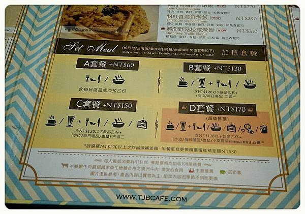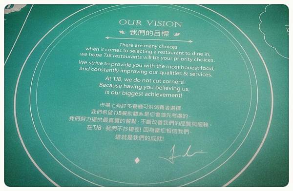桌上的餐墊...有著TJB Cafe'對於品質與服務的目標