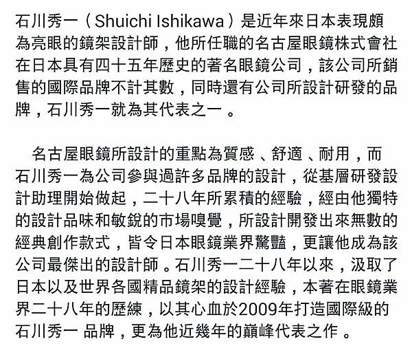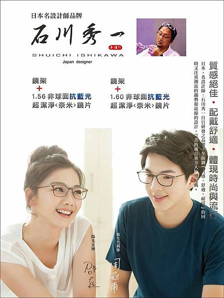 搭配法拉蒂抗藍光鏡片+石川秀一鏡框 超輕、超彈性 塑晶