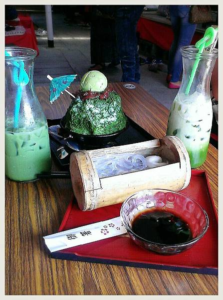 來點冰加上抹茶冰淇淋再加上些許紅豆~