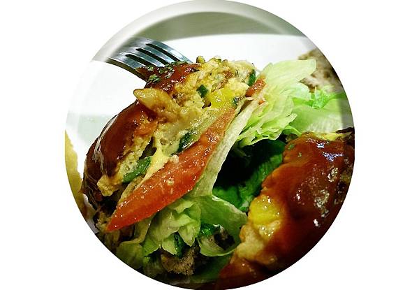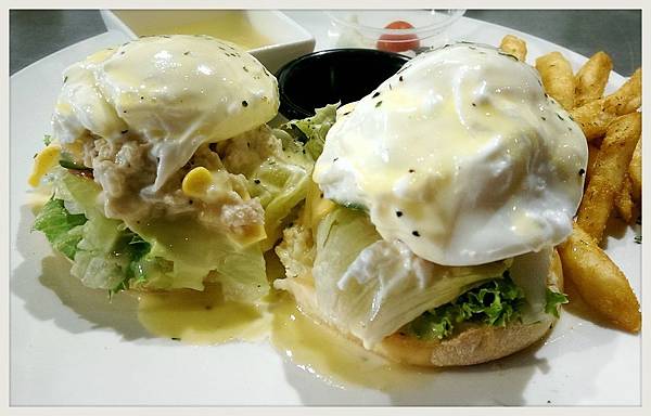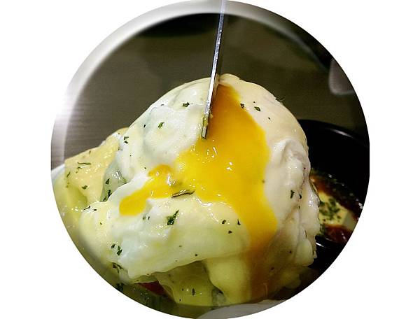 蛋黃慢慢流下~滿滿的覆蓋在玉米鮪魚上面~