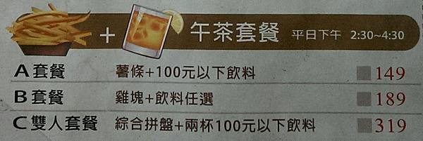 ●薯條+午茶套餐(平日下午 2:30~4:30)