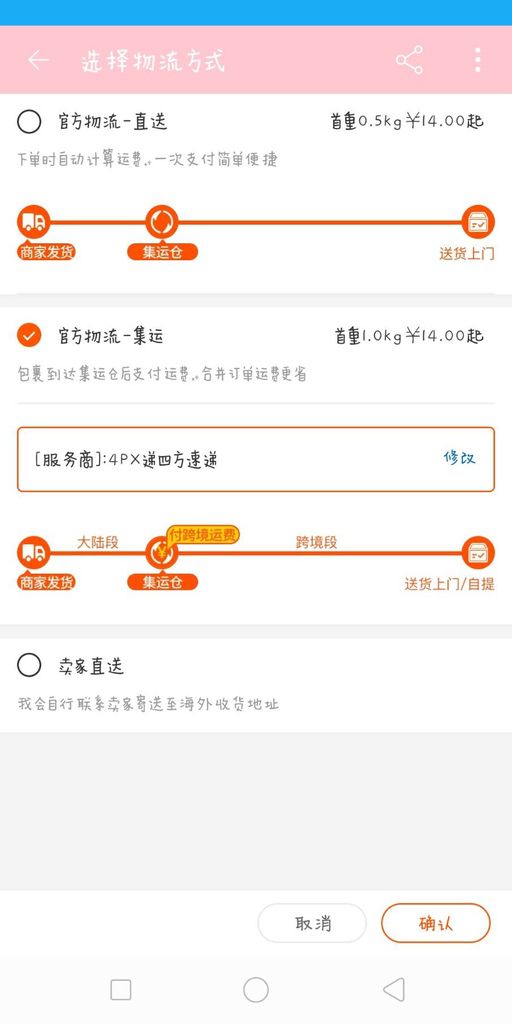 (5)我選擇官方集運方式