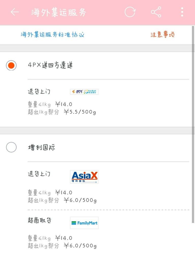 以上為官方集運方式~