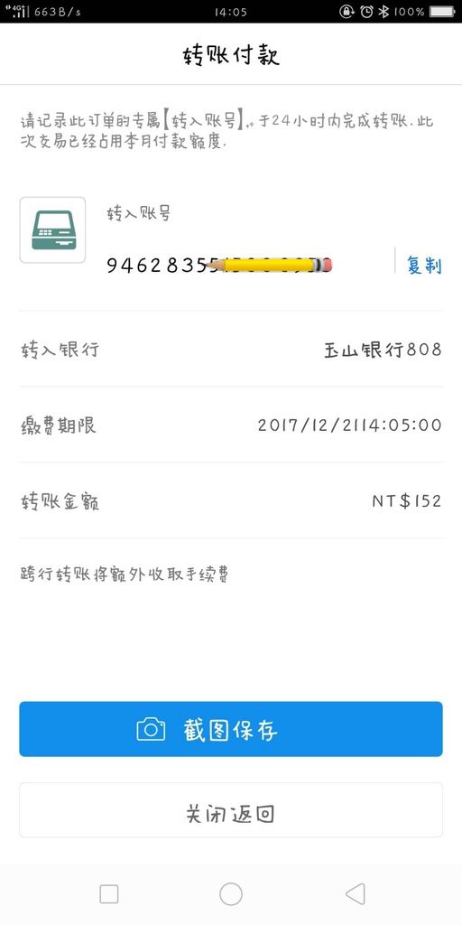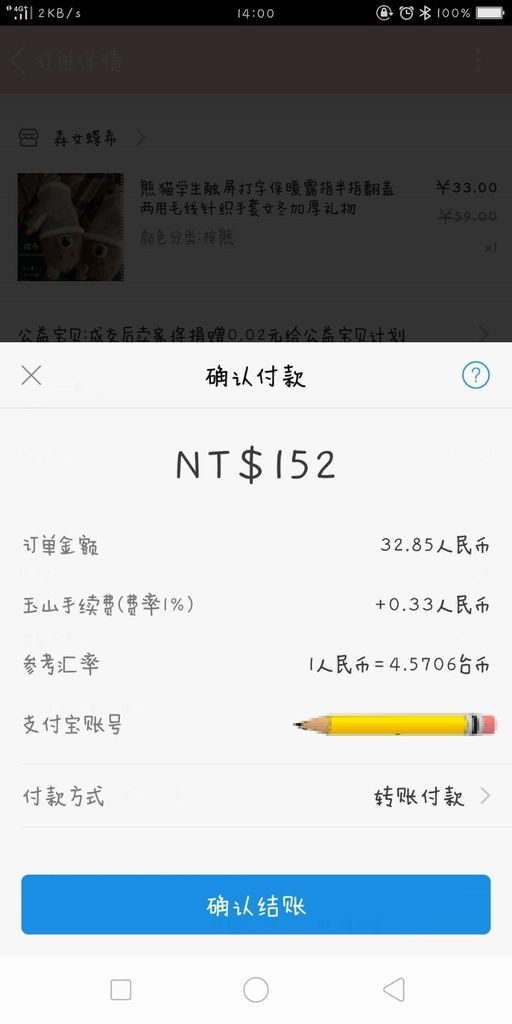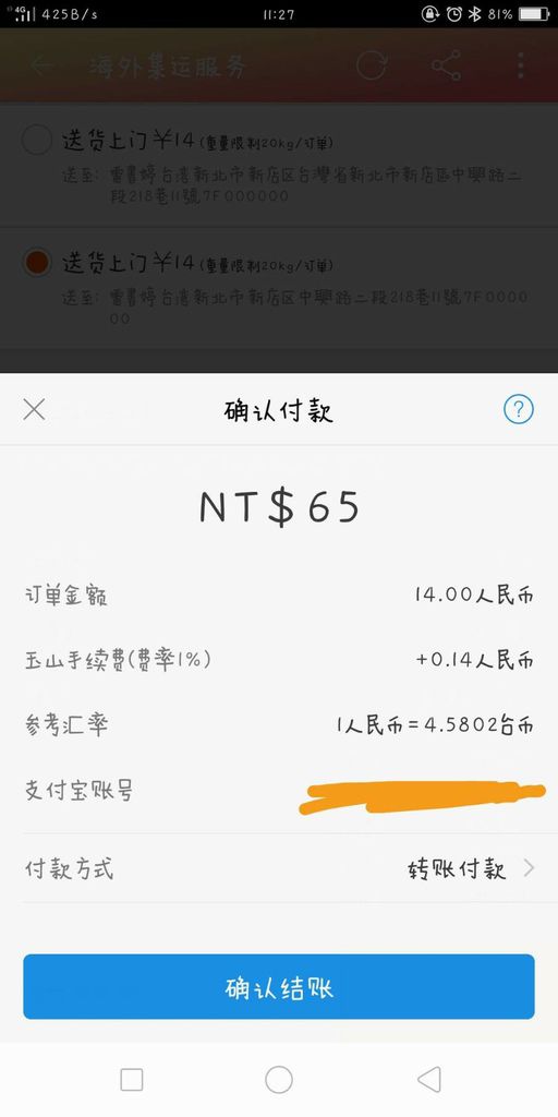 接著再回去支付寶的付款畫面