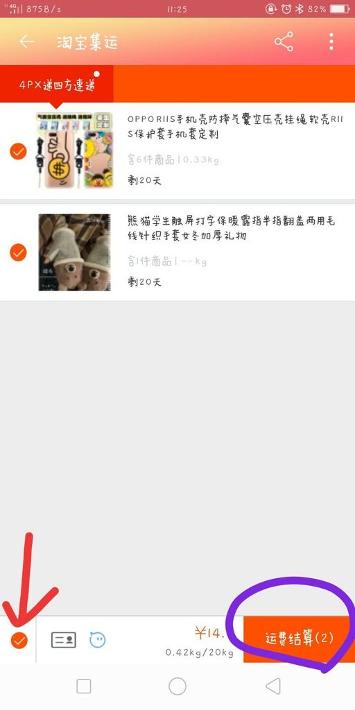 把要寄到台灣的物品都打勾(下方的紅色箭頭可以直接勾全選)